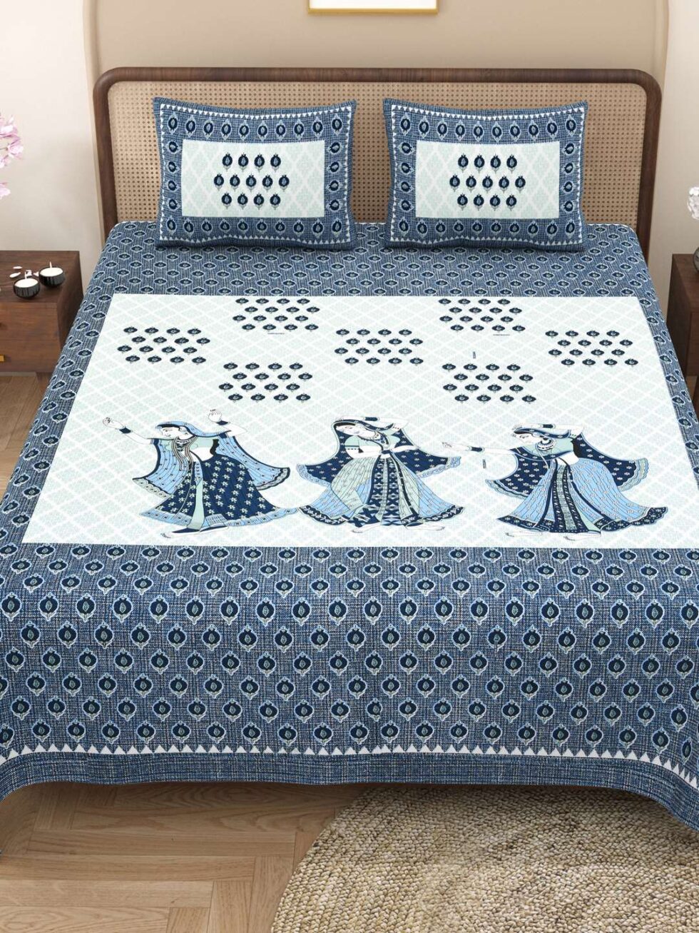100% Pure Cotton Traditional Printed Bedsheet for Double Bed King Size Bedsheet with 2 Pillow Covers